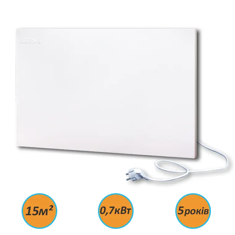 Потужність 700 Вт, площа 15м², обмінна гарантія 5 років